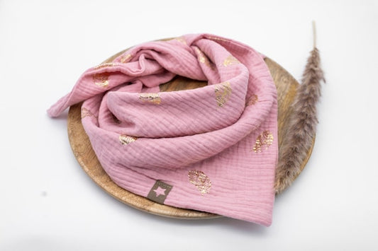 Musselin Dreieckstuch Kinder - rosa goldene Blätter