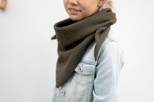 Musselin Dreieckstuch Kinder - Khaki Blume