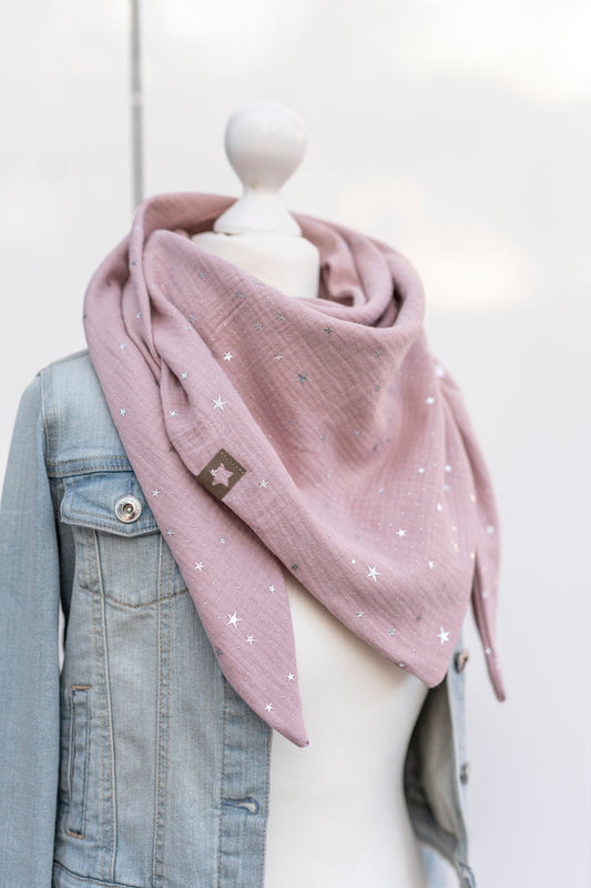 Musselin Dreieckstuch sepia rosé silver Stars große Kinder/ jugendliche