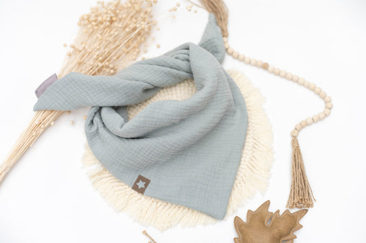 Musselin Dreieckstuch Kinder BIO (GOTS) - Bi Color hell mint / sepia rose