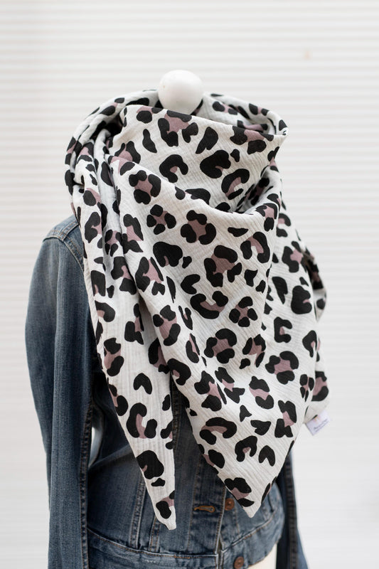 Musselin XXL Tuch Leopard Dreieckstuch weiß