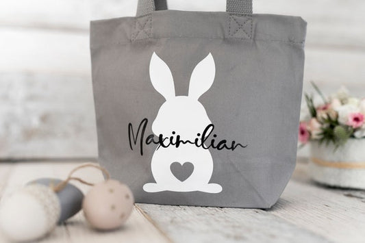 Oster Tasche personalisiert mit Namen aus Bio Baumwolle grau