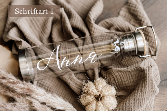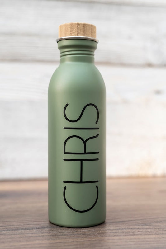 Personalisierte Trinkflasche Sportflasche Tritan Bambusholz Edelstahl Geschenk 800ml Flasche