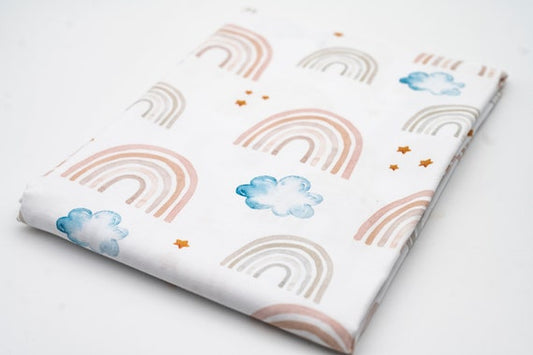 Regenbogen Stoff - Baumwollstoff - Wolke -rosa - blau - weiß