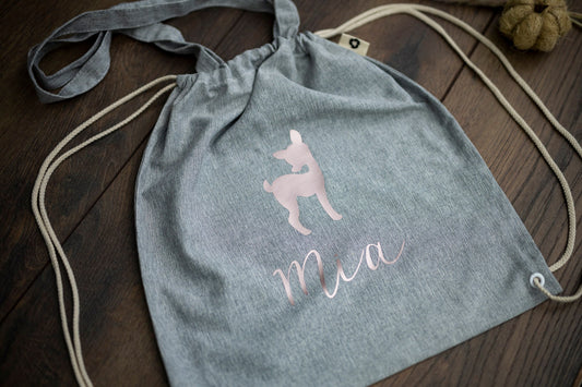 Personalisierter zuckersüßer Stoff Rucksack Tasche Rehkitz rauchgrau rosegold Kinder Mädchen mit Kordelzug
