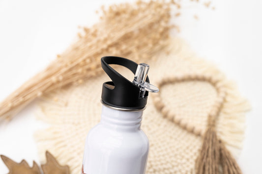 Personalisierte Kinder Trinkflasche weiß 500ml Einschulung Schule - Blumen