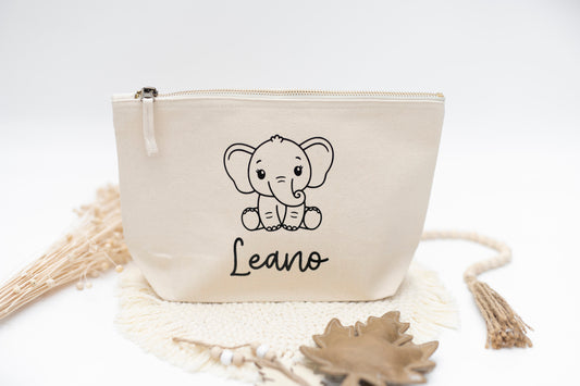 Windeltasche Name + Elefant personalisiert Natur beige Baumwolle