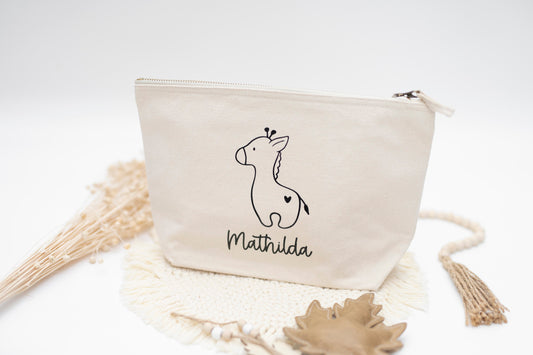Windeltasche Kosmetiktasche Name + Giraffe personalisiert Natur beige Baumwolle