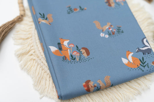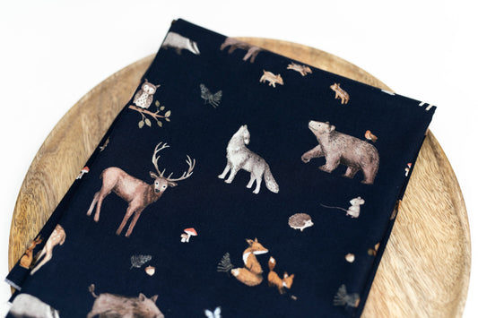 BAUMWOLLE Waldtiere Fuchs Bär Wolf Stoff - navy