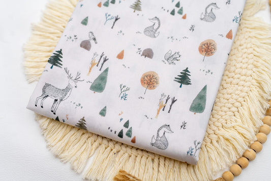 BAUMWOLLE Waldtiere Fuchs Hirsch Skandi - weiß