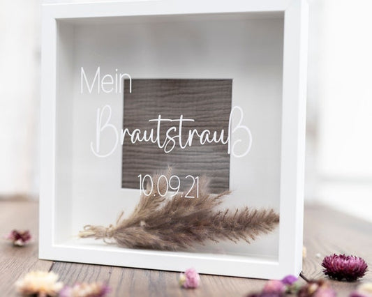 Bilderrahmen Brautstrauß personalisiert weiß Hochzeit Hochzeitsgeschenk Datum