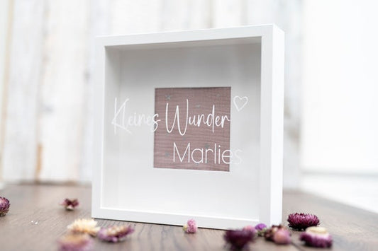 Bilderrahmen kleines Wunder personalisiert weiß mit Rosa Musselin