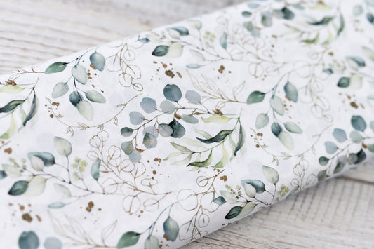 Baumwollstoff Eucalyptus Boho Popelin Webware Baumwolle weiß - grün- gold