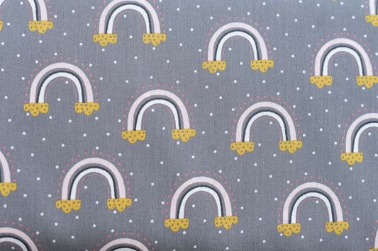 Baumwollstoff Regenbogen Popelin Webware Baumwolle grau - rosa Kinder - Baby