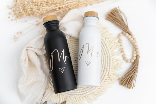 Edelstahl Trinkflasche Mr. & Mrs. mit Herz - 650 ml Flasche