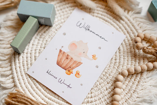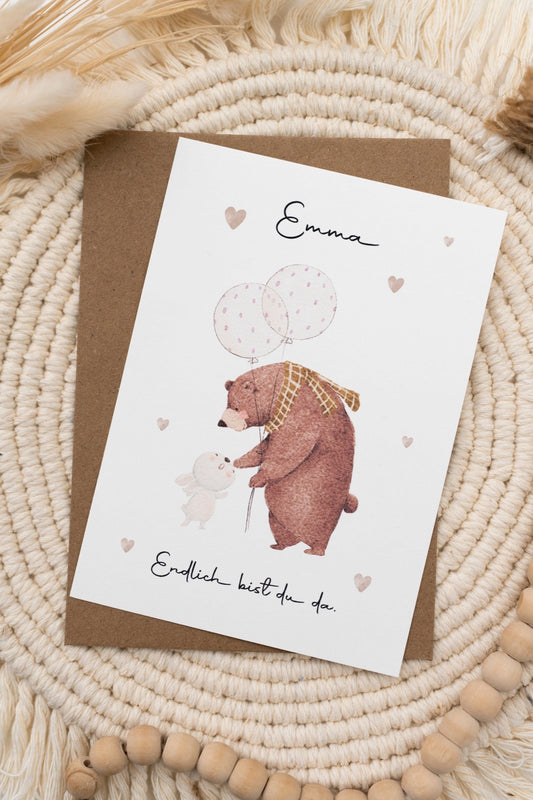 Glückwunschkarte Geburt - Bär und Hase - Wunschname