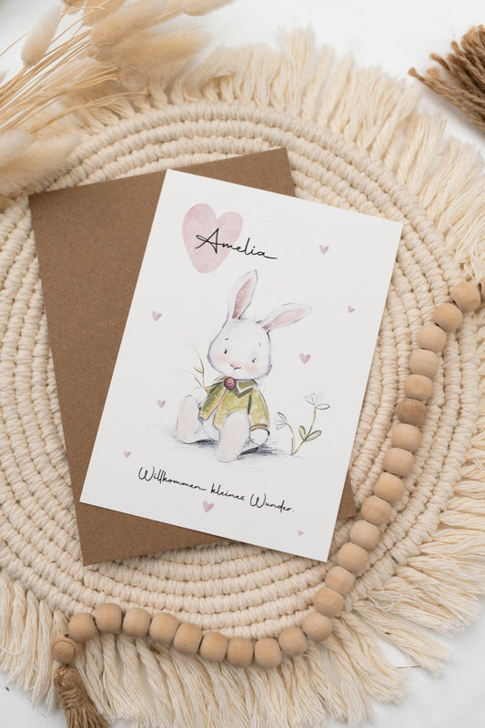 Glückwunschkarte Geburt - Kleiner Hase - Wunschname