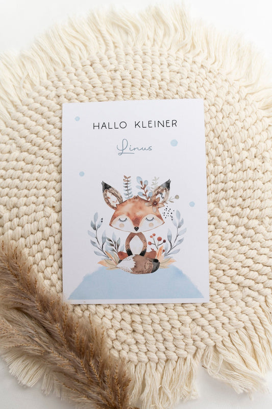 Glückwunschkarte Geburt - Kleiner Fuchs - Wunschname