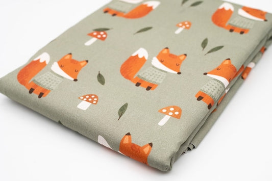 Fuchs Stoff - Baumwollstoff - Herbst - grün - weiß