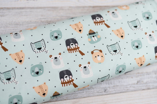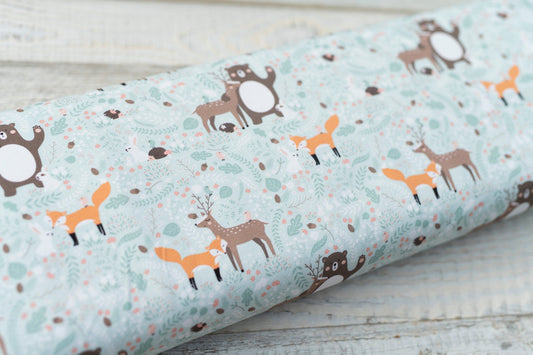 French Terry Stoff süße Tiere - hell mint - Fuchs - Bär