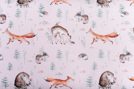 French Terry BIO (GOTS) Waldtiere Stoff - rosa - Fuchs - Bär - Reh