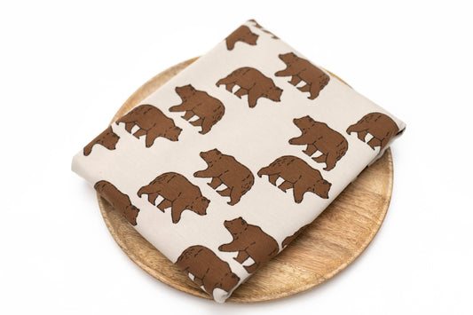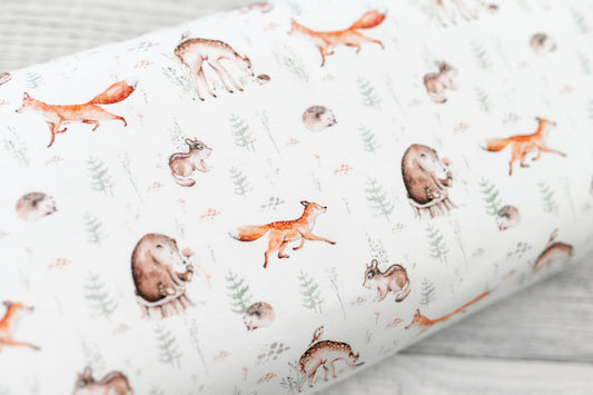 French Terry BIO (GOTS) Waldtiere Stoff - weiß - Fuchs - Bär - Reh