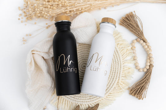 Edelstahl Trinkflasche Mr. & Mrs. mit Name - 650 ml Flasche