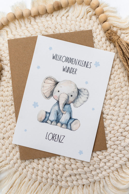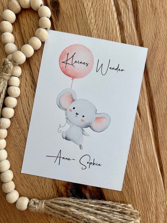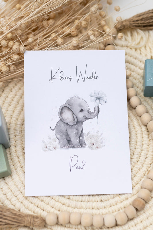 Glückwunschkarte Geburt - Kleines Wunder Elefant - Wunschname