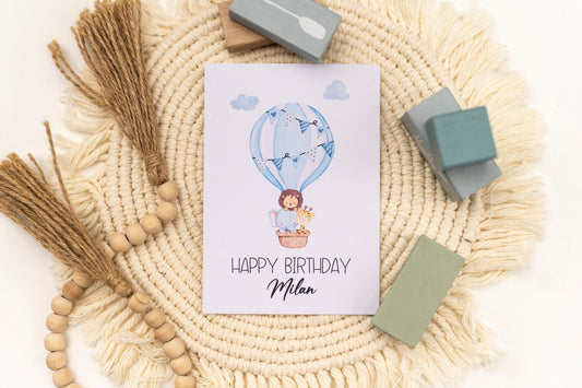 Glückwunschkarte Geburtstag - Heißluftballon blau - Wunschname