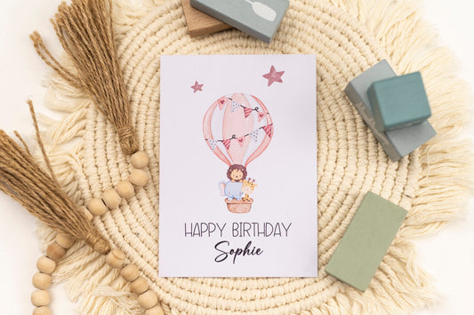 Glückwunschkarte Geburtstag - Heißluftballon rosa - Wunschname