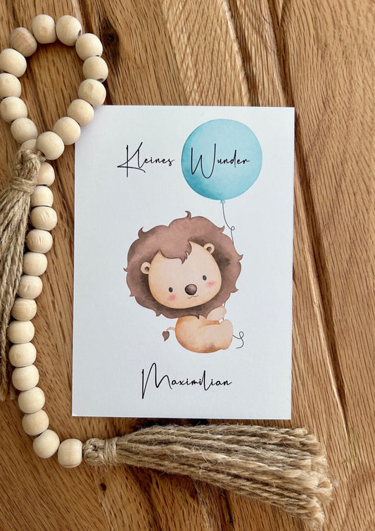 Glückwunschkarte Geburt - Kleines Wunder Löwe - Wunschname