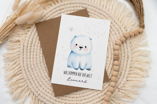 Glückwunschkarte Geburt - süßer Eisbär - Wunschname