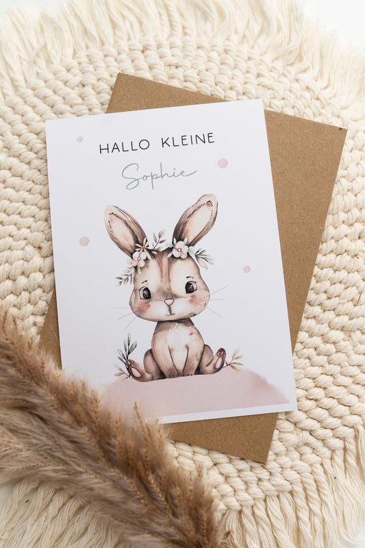 Glückwunschkarte Geburt - süßer Hase - Wunschname