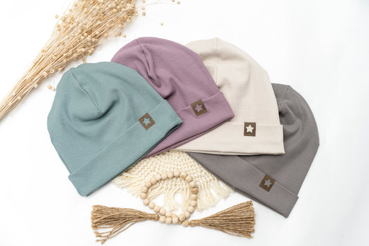 Hippster Beanie Mütze - Farben lilac, hell sand, grau, old mint