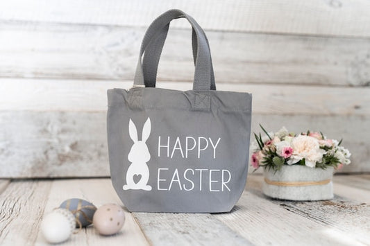 Happy Easter Tasche aus Bio Baumwolle grau