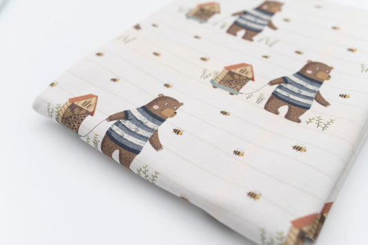 AusverkauftJERSEY Bären Stoff - Baumwolljersey - blau/grau
