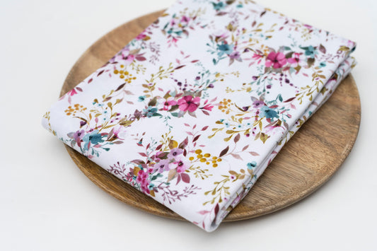JERSEY Blumen - weiß - rosa