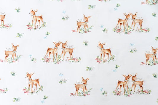 Jersey Rehkitz BIO (GOTS) Stoff - Poppy Design - weiß