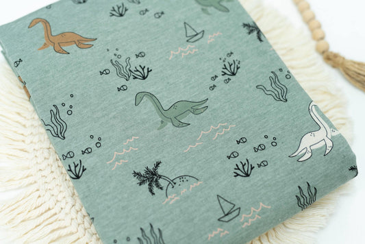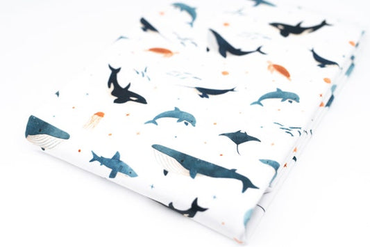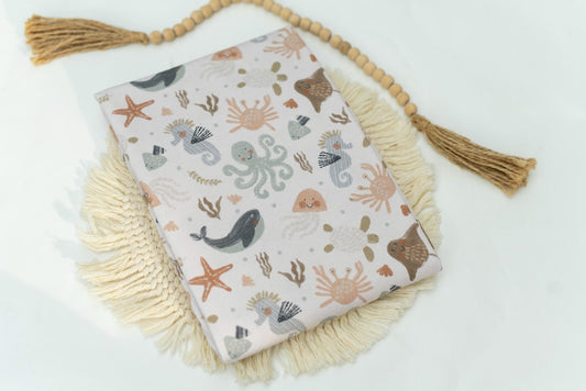 Jersey Stoff - süße Meerestiere - Krake - Schildkröte - creme