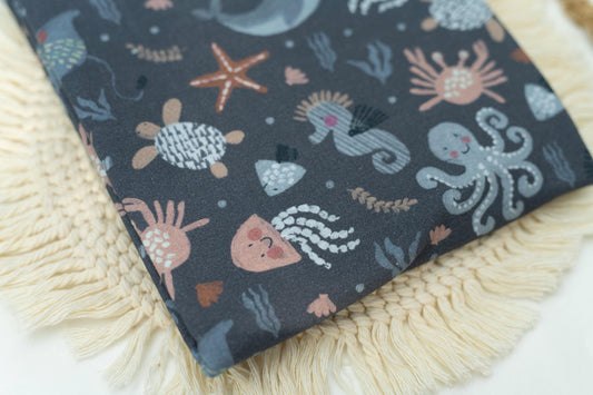 Jersey Stoff - süße Meerestiere - Krake - Schildkröte - navy