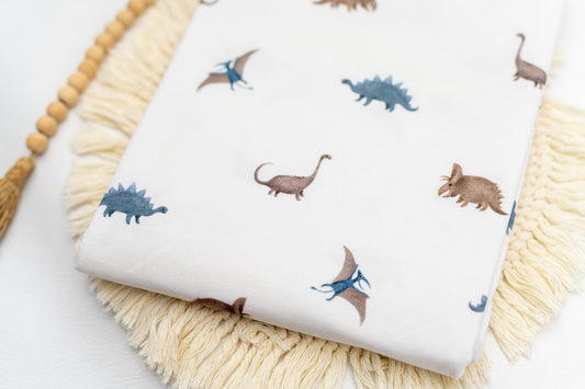 Jersey Stoff - Dino & Streifen - weiß - blau