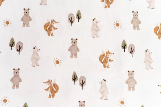 Jersey Stoff Bär Eichhörnchen - Poppy Design - weiß