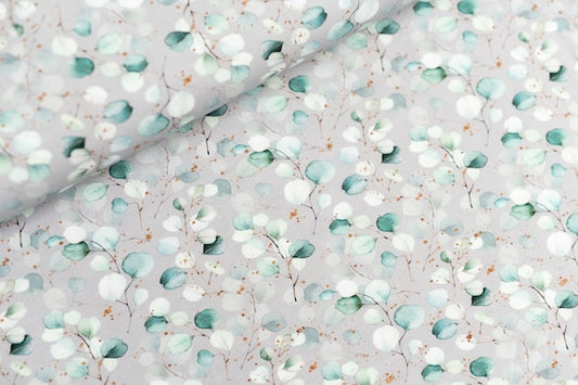 AusverkauftJersey Stoff - Eucalyptus - Boho - weiß - grün