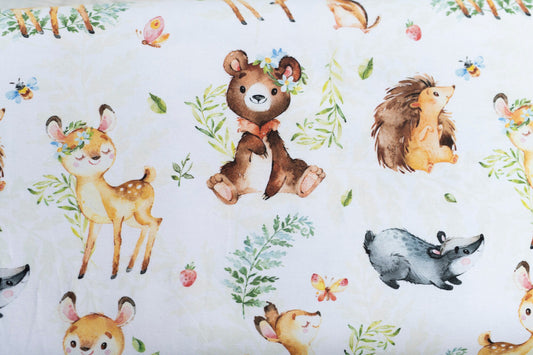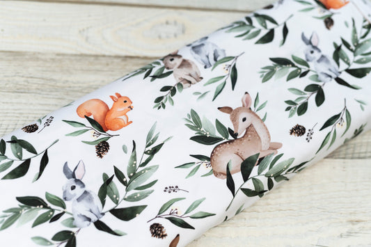 Jersey Rehkitz - Hasen- Eichhörnchen Stoff - Aquarell