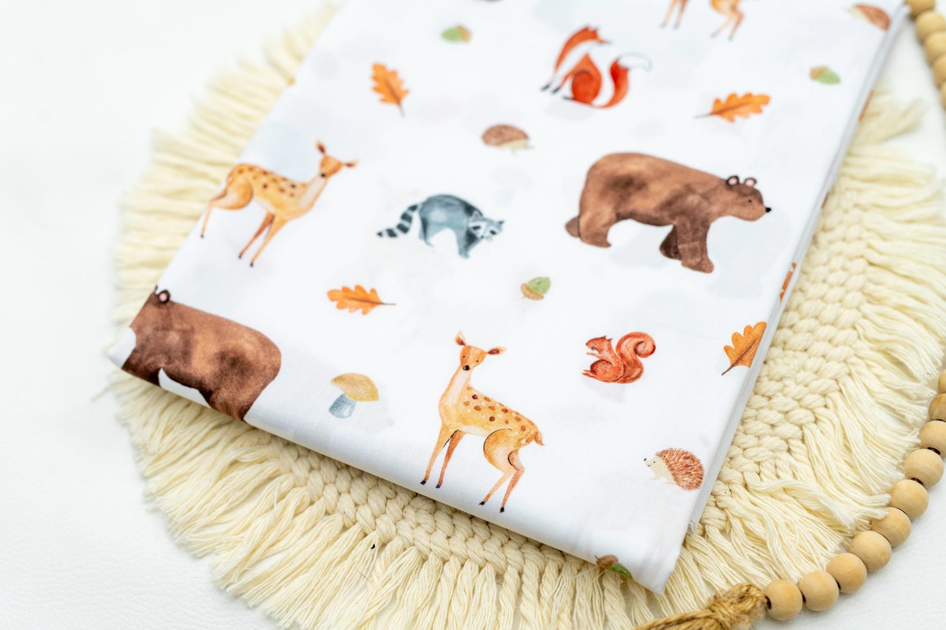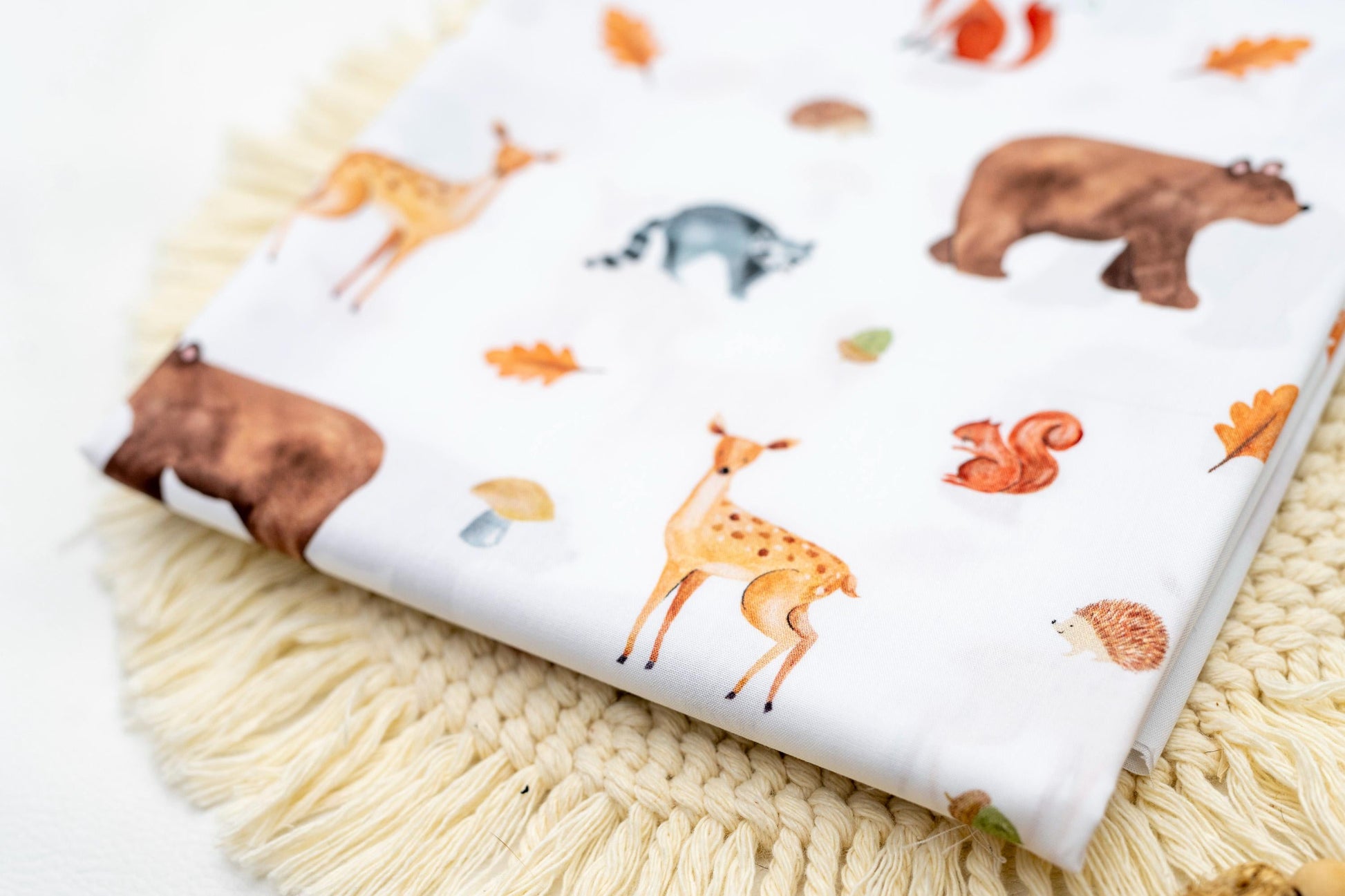 Süßer Baumwollstoff mit Waldtiermotiv im skandinavischem Design.