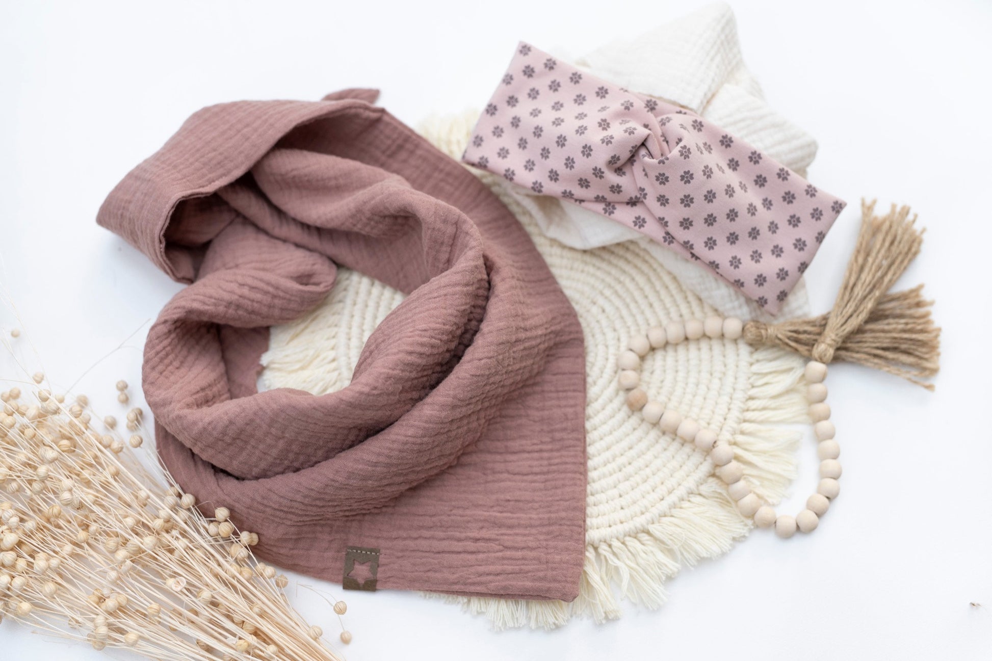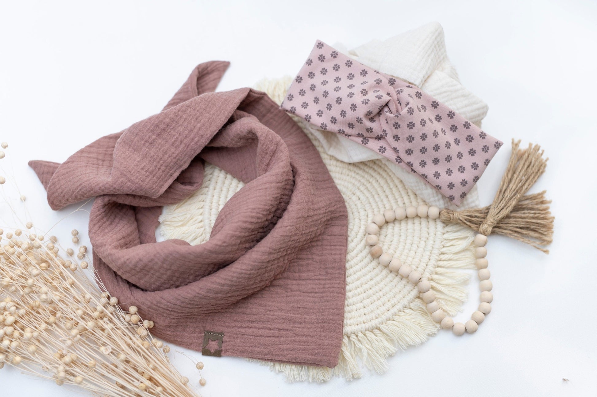 Musselin Tuch & Jersey Stirnband Set old blush Dreieckstuch Mädchen